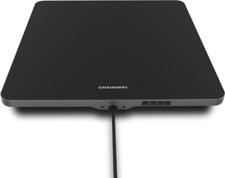 Leitor RFID de mesa, UHF, BT. Antena de 1dBm-30dBm circular. Vem com cabo USB Type-C.
